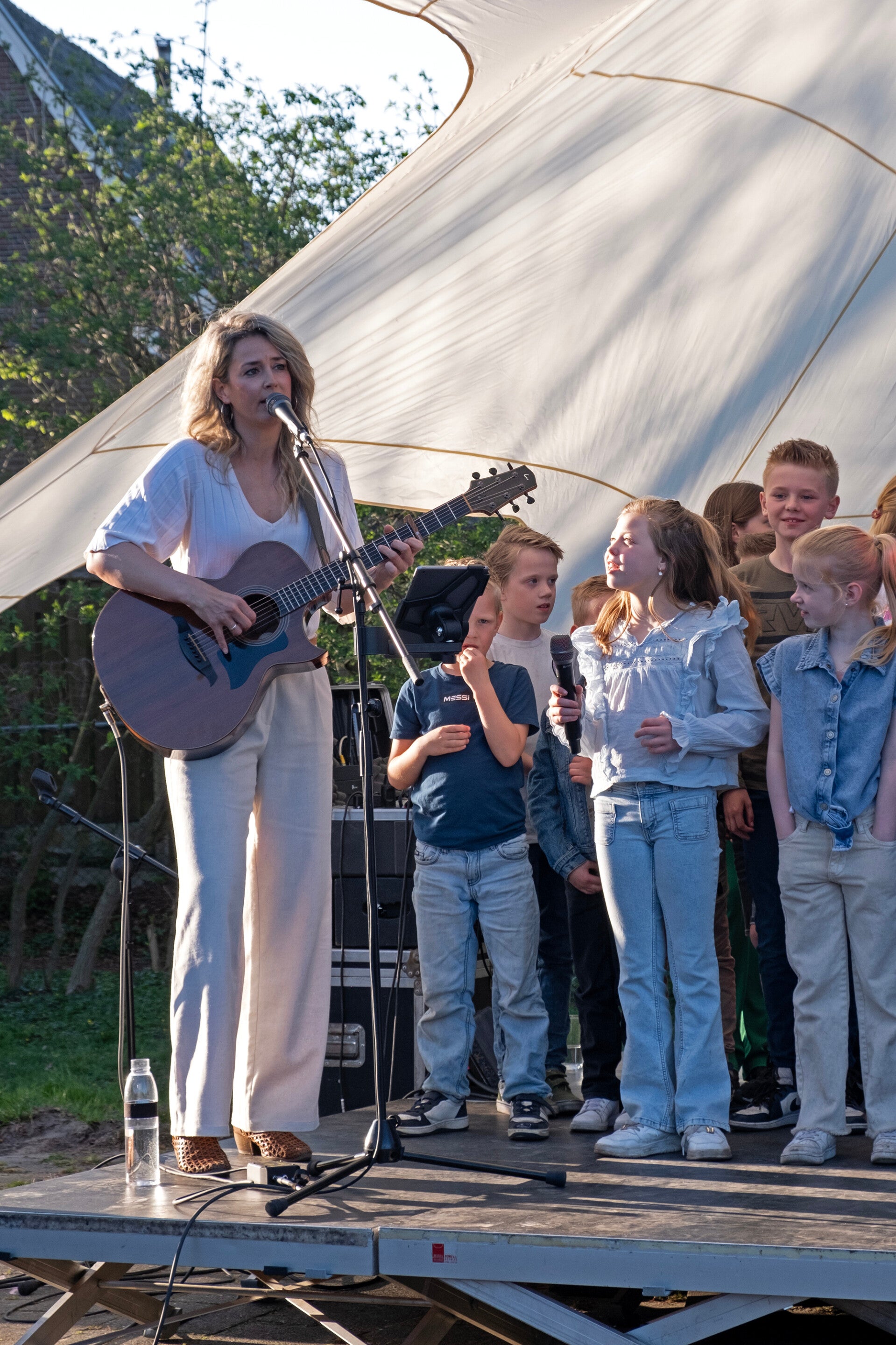 Op het schoolplein, met dank aan CBS de Veenbrug, stonden legertenten waarin jong en oud kon luisteren naar de prachtige lezing maar ook naar het zelfgemaakte dorpslied over vrijheid gezongen door dorpsgenoot Maaike samen met dorpsgenoten en kinderen van CBS de Veenbrug.